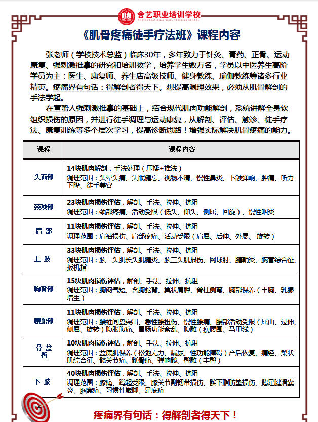 舍艺学校 郑州肌骨疼痛徒手疗法学习
