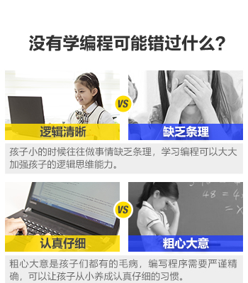 所以,少儿编程是一个具有丰富资源和场景可能性的学科方向,以驱使儿童深入的、创新的考虑问题的解决方法,并锻炼到儿童的设计思维。随着问题的复杂度,以及儿童问题解决方案的复杂度,和方案中操控设备复杂度的提升,儿童的设计思维能力在不断提升。    通过以上基本技能介绍,我们可以得出结论,少儿编程,对比现在学校里的所有学科而言,都有鲜明的特色和优势。它对我们儿童的教育和锻炼,恰恰是许多学科所不能提供的。