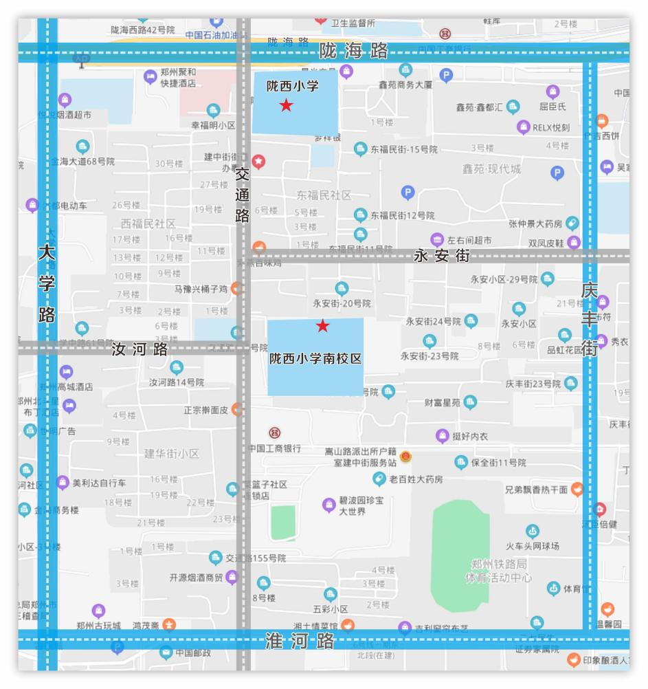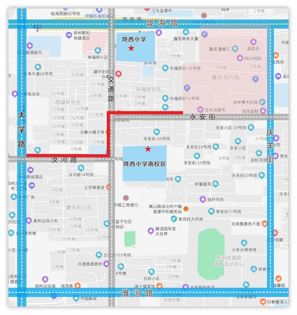 陇西小学教育集团是郑州市二七区最早成立的集团校,集团两校区相距仅400米。