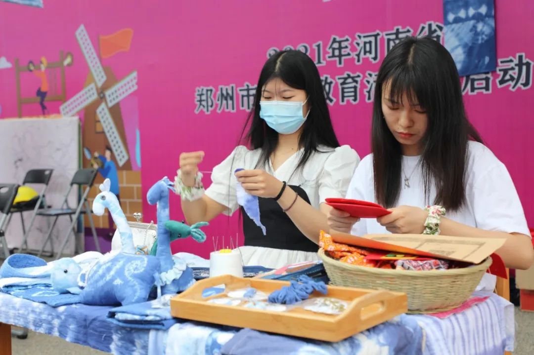 郑州艺术幼儿师范学校的展示,既有体现专业特色的幼儿照护技能展示,又有反映艺术特点的大合唱、小合唱、舞蹈等节目,更有彰显中华优秀传统文化的木板年画、烙画、面塑、扎染、陶艺等非物质文化遗产项目体验。