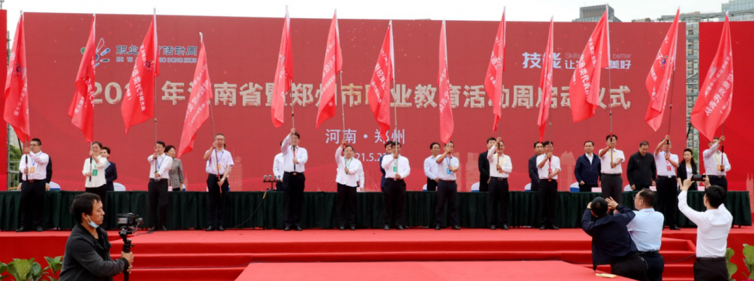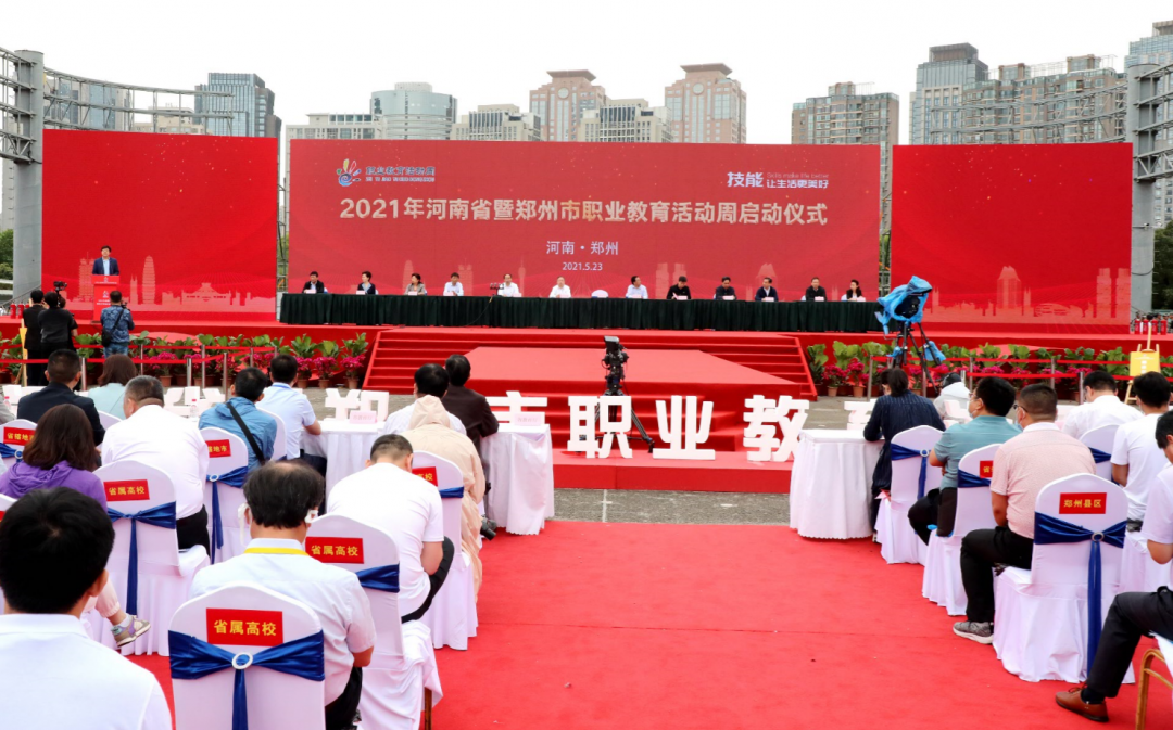 5月23日,2021年河南省暨郑州市职业教育活动周启动仪式在郑州举行。省委教育工作领导小组秘书组组长、省教育厅党组书记、厅长郑邦山,省人大常委会委员、河南中华职业教育社副主任张晓林,省委宣传部副部长尹书博等领导出席活动启动仪式。省直有关部门负责同志,郑州市政府及市直有关部门负责同志,职业院校师生代表,行业、企业代表等1000余人参加活动。