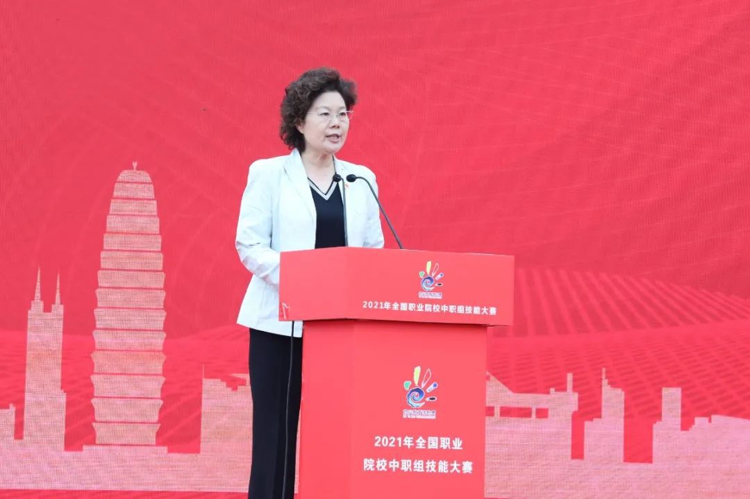 黄河水利职业技术学院党委书记周保平作为职业院校代表发言,她表示,学校将以此次活动周为契机,继续坚持正确的办学方向,努力营造“崇尚一技之长、不唯学历凭能力”的良好氛围,持续深化三教改革,“岗课赛证”综合育人。