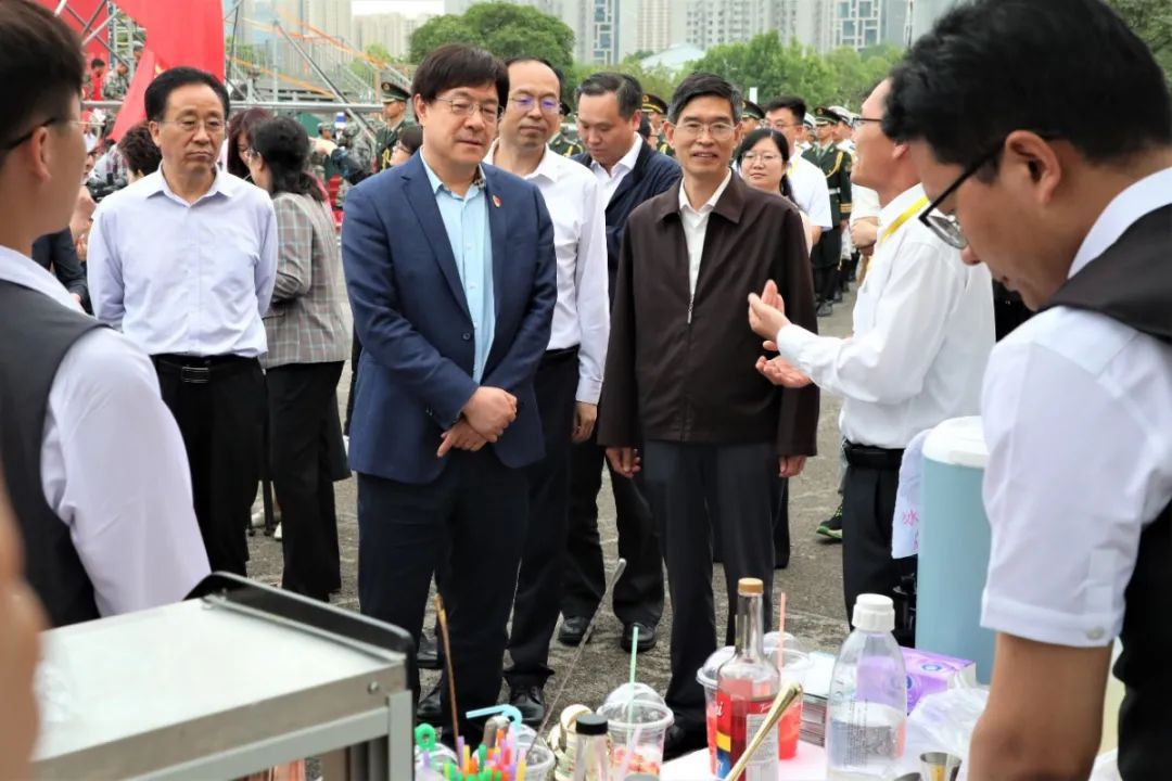 启动仪式后,与会领导、嘉宾一同参观我省职业教育成果展示。各职业(技工)院校不仅以实物展示的形式呈现了各校职业教育办学成果和特色亮点,还在互动展示区精心创设了与专业相关的各种体验项目,让与会者通过动手体验近距离感受职业教育的魅力。
