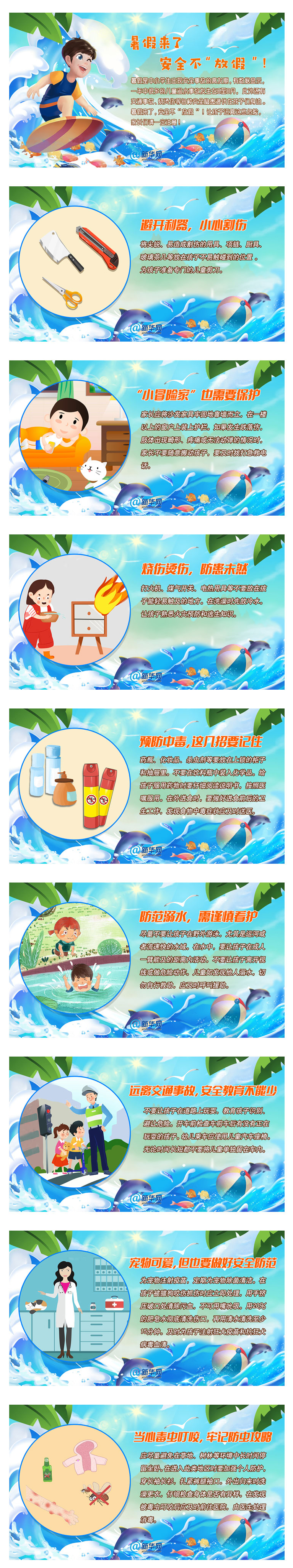 暑假是中小学生出现安全事故的高发期,有数据显示,一年中很多的儿童溺水事故发生在6至8月,此外还有交通事故、烧烫伤等各种安全隐患潜伏在孩子们身边。暑假来了,安全不“放假 ”!让孩子远离这些危险,家长们请看过来!